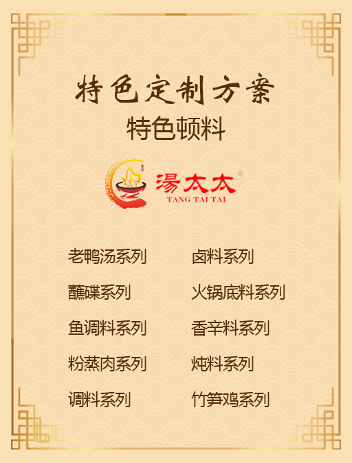 重慶湯太太提供特色湯料,這里你可以找到屬于自己的口味、產(chǎn)品、服務(wù),我們根據(jù)不同的客戶我們制定了一套方案,根據(jù)客戶需求可定制產(chǎn)品的大小分量以及特殊要求。